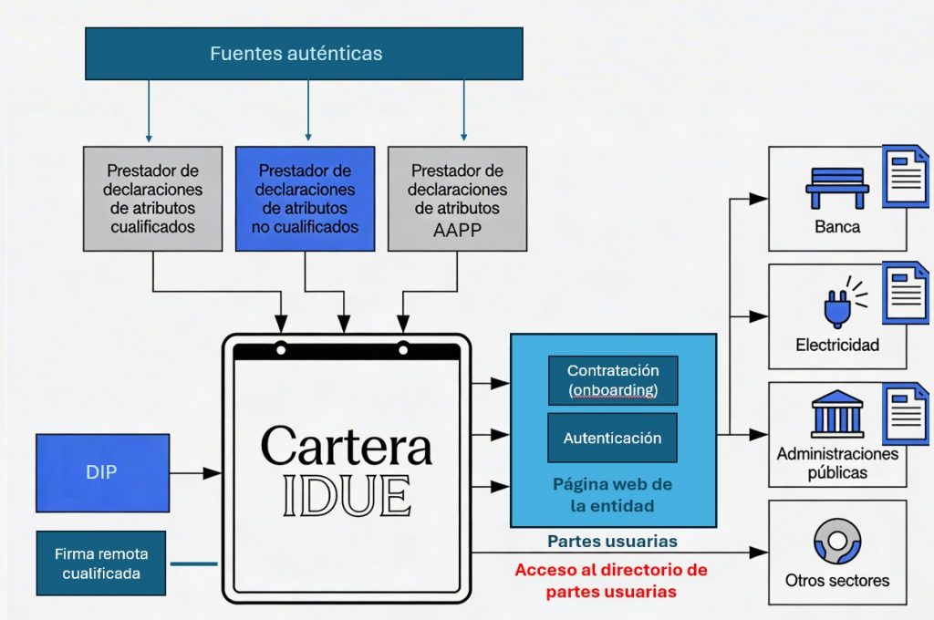 El plazo es el 31 de diciembre de 2027: antes de esa fecha, estas entidades deberán poder ofrecer servicios en los que el mecanismo de identificación y firma electrónica sea la Cartera IDUE. El grado de preparación de las entidades privadas en España todavía es muy bajo, y la información institucional disponible sobre cómo integrarse es escasa.